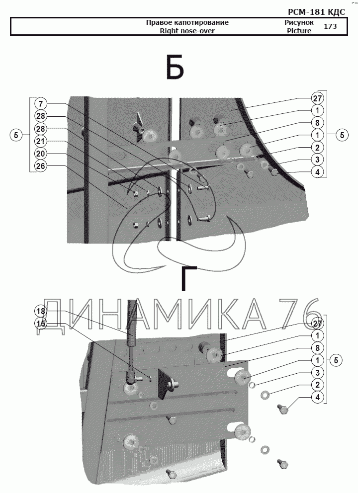 Перечень комплектующих от Правое капотирование на РСМ-181 "Torum-740"