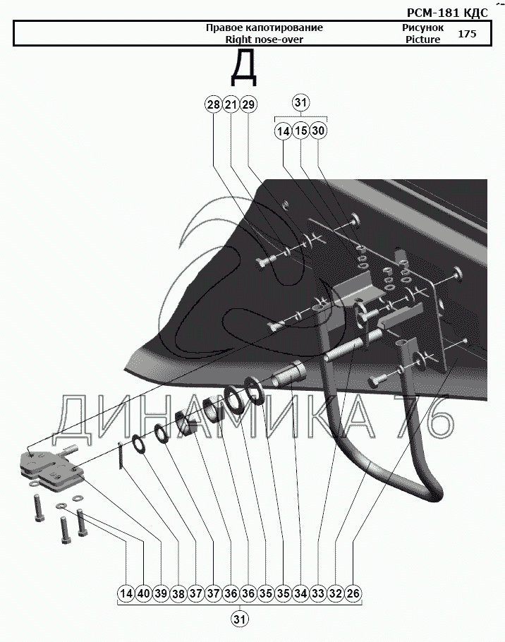 Схемы запчастей предназначены для справочных целей! Мы продаем не все запчасти от Правое капотирование на РСМ-181 "Torum-740", представленные в этом списке.