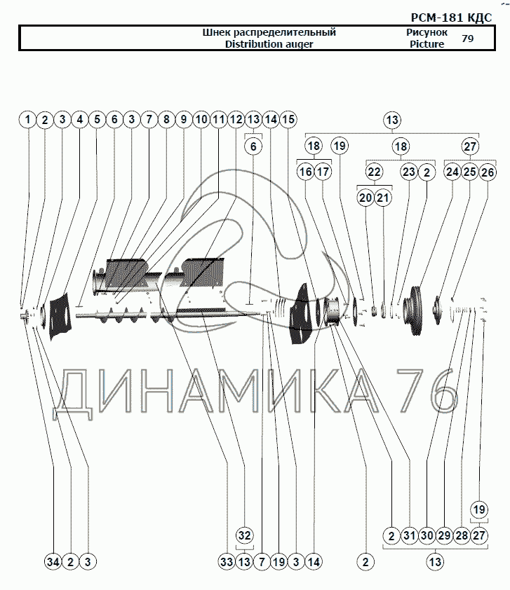 Перечень комплектующих от Шнек распределительный на РСМ-181 "Torum-740"