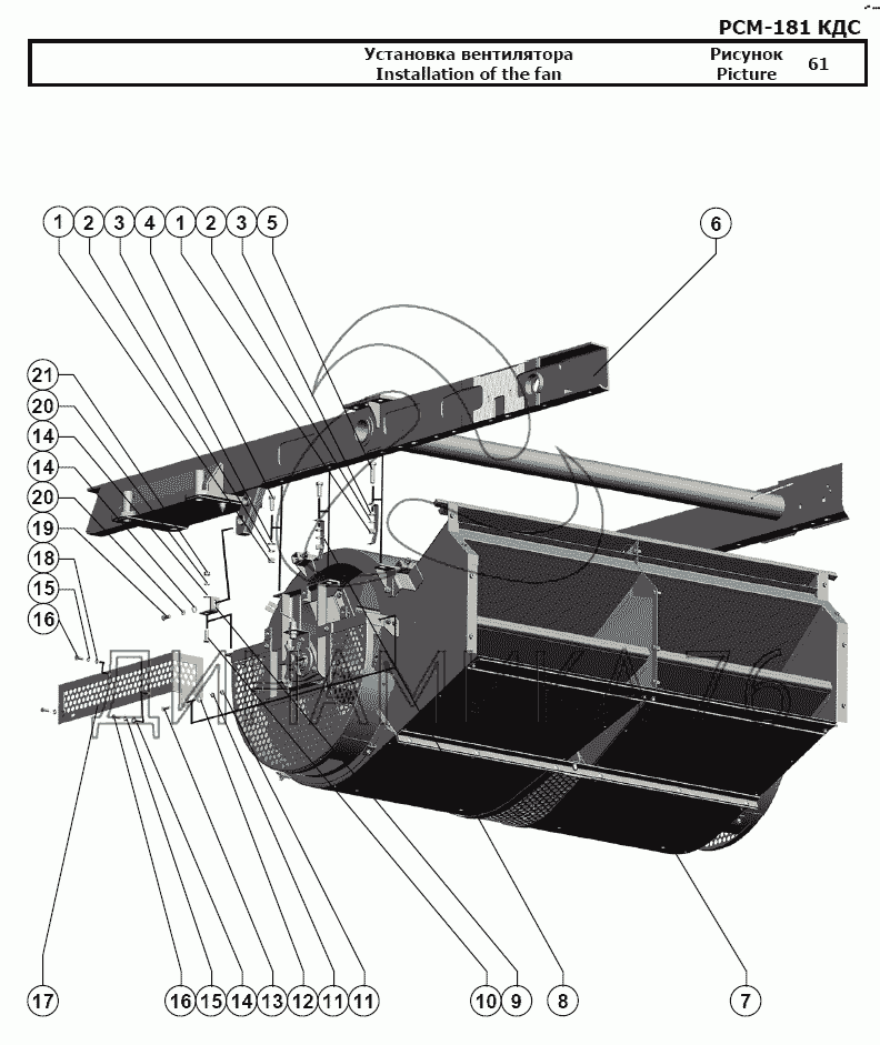 Схемы запчастей предназначены для справочных целей! Мы продаем не все запчасти от Установка вентилятора на РСМ-181 "Torum-740", представленные в этом списке.