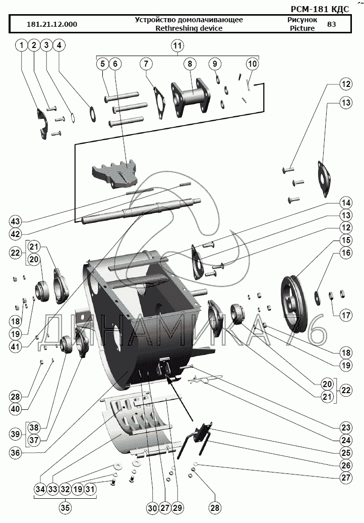Перечень комплектующих от Устройство домолачивающее на РСМ-181 "Torum-740"