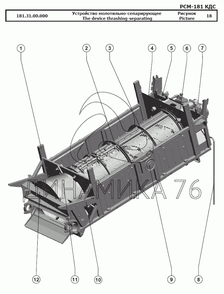 Перечень комплектующих от Устройство молотильно-сепарирующее на РСМ-181 "Torum-740"