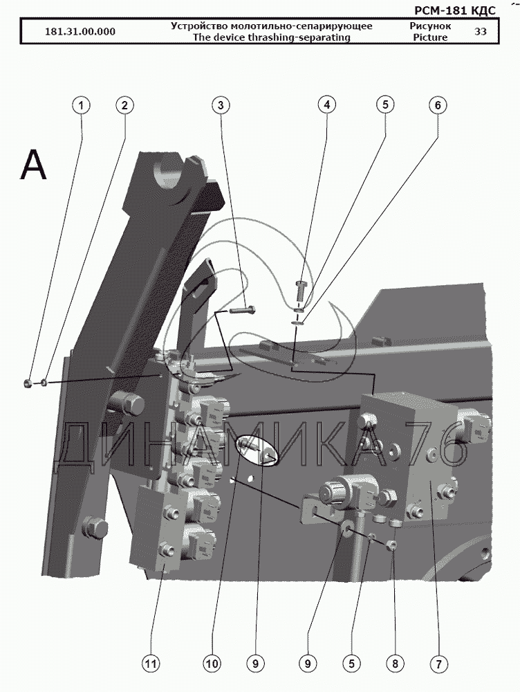 Перечень комплектующих от Устройство молотильно-сепарирующее на РСМ-181 "Torum-740"
