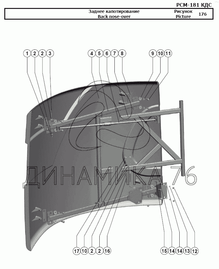 Схемы запчастей предназначены для справочных целей! Мы продаем не все запчасти от Заднее капотирование на РСМ-181 "Torum-740", представленные в этом списке.