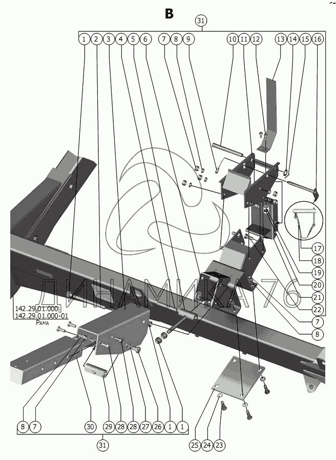 Схемы запчастей предназначены для справочных целей! Мы продаем не все запчасти от Опора на Тележка РСМ-142.29, представленные в этом списке.