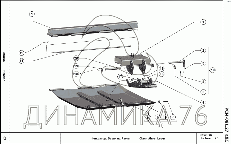 Перечень комплектующих от Фиксатор. Башмак. Рычаг на Жатка РСМ-081.27