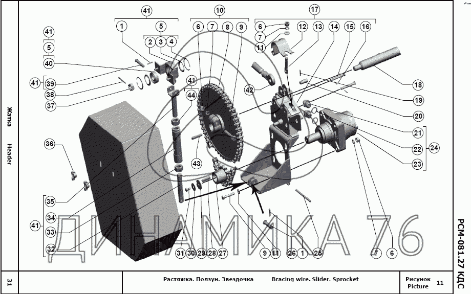 Растяжка. Ползун. Звездочка на Жатка РСМ-081.27 (до 2010 г.)