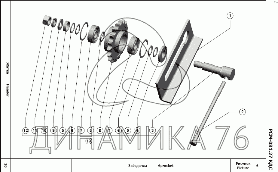Схемы запчастей предназначены для справочных целей! Мы продаем не все запчасти от Звёздочка на Жатка РСМ-081.27, представленные в этом списке.