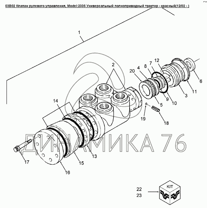 Перечень комплектующих от 03B02 Клапан рулевого управления на Versatile серии 2000