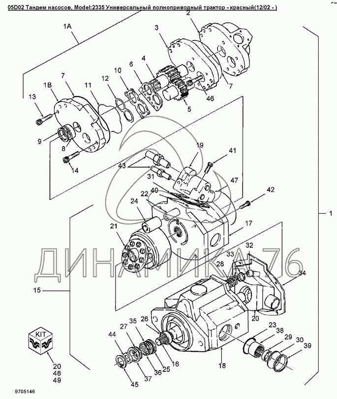 Перечень комплектующих от 05D02 Тандем насосов на Versatile серии 2000