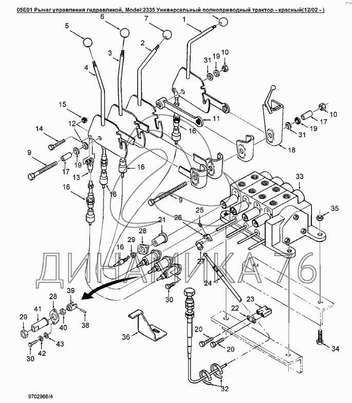 Перечень комплектующих от 05E01 Рычаг управления гидравликой на Versatile серии 2000
