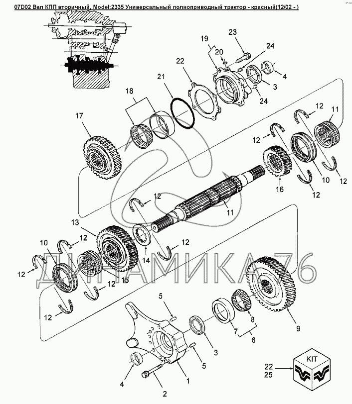 Перечень комплектующих от 07D02 Вал КПП вторичный на Versatile серии 2000