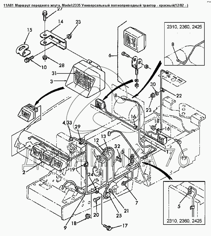 Перечень комплектующих от 11A01 Маршрут переднего жгута на Versatile серии 2000