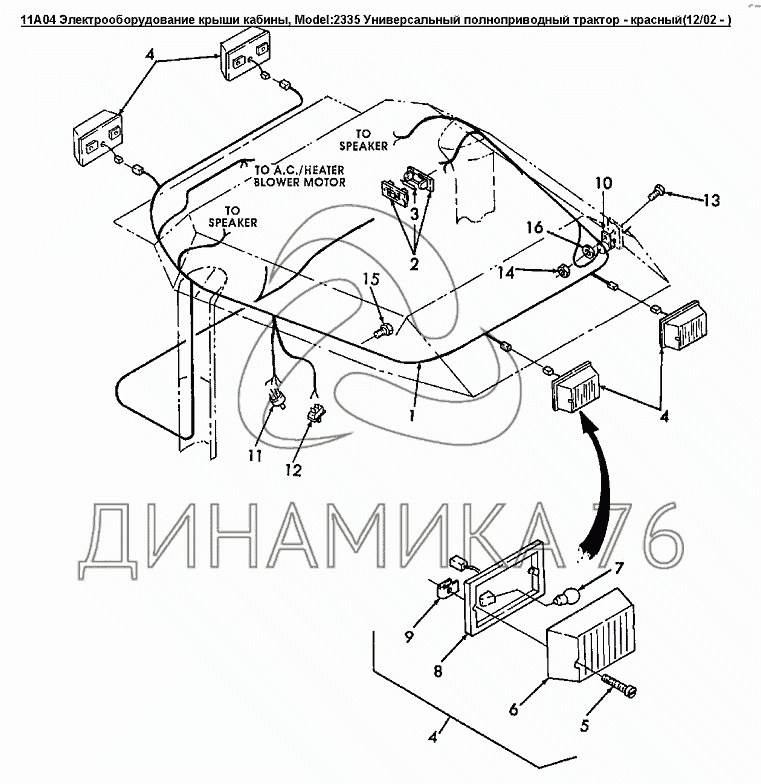 Перечень комплектующих от 11A04 Электрооборудование крыши кабины на Versatile серии 2000