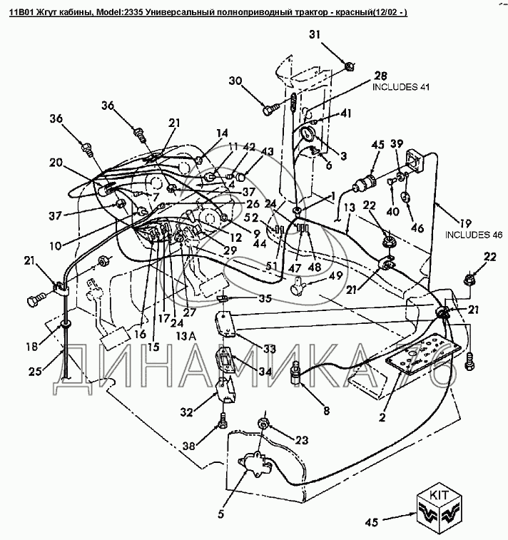 Перечень комплектующих от 11B01 Жгут кабины на Versatile серии 2000