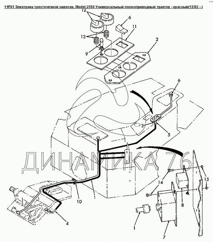 Перечень комплектующих от 11F01 Электрика трехточечной навески на Versatile серии 2000