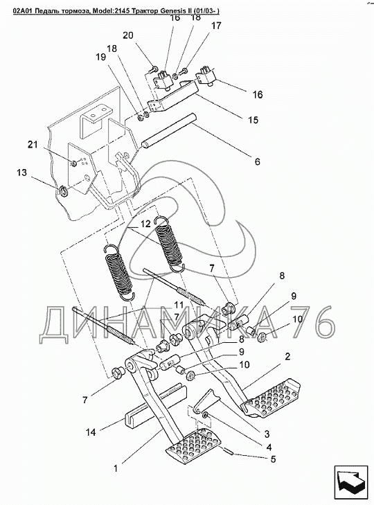Перечень комплектующих от 02A01 Педаль тормоза на Versatile серии GENESIS