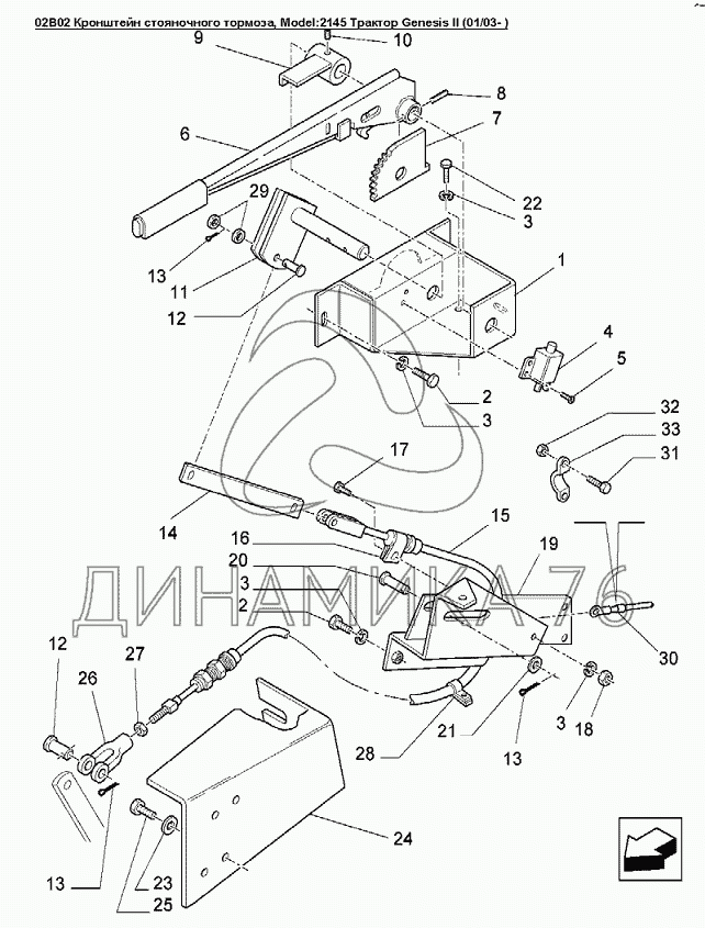 Перечень комплектующих от 02B02 Кронштейн стояночного тормоза на Versatile серии GENESIS