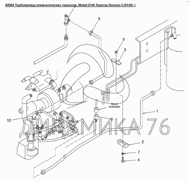 Перечень комплектующих от 02D04 Трубопровод пневматических тормозов на Versatile серии GENESIS