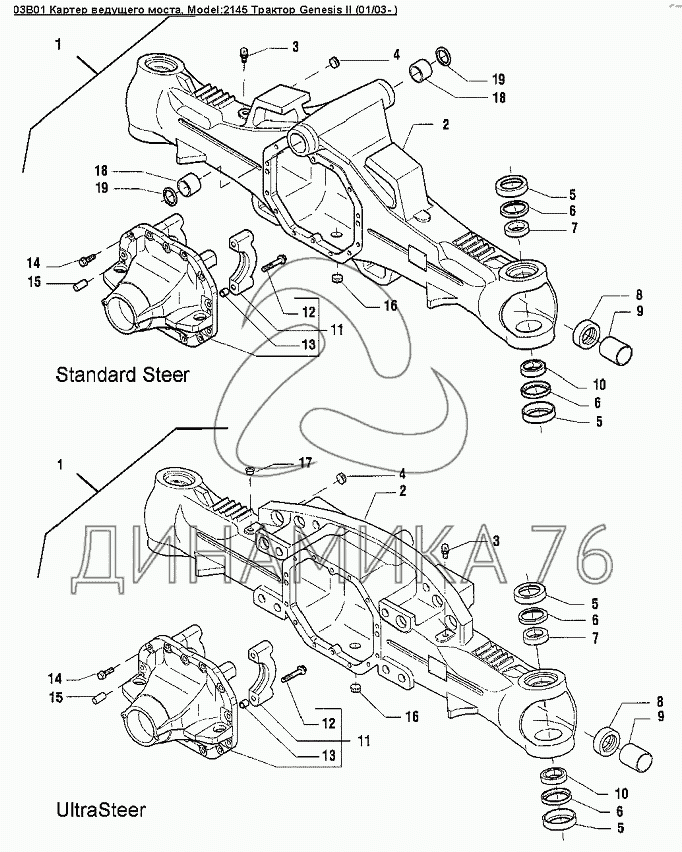 Перечень комплектующих от 03B01 Картер ведущего моста на Versatile серии GENESIS