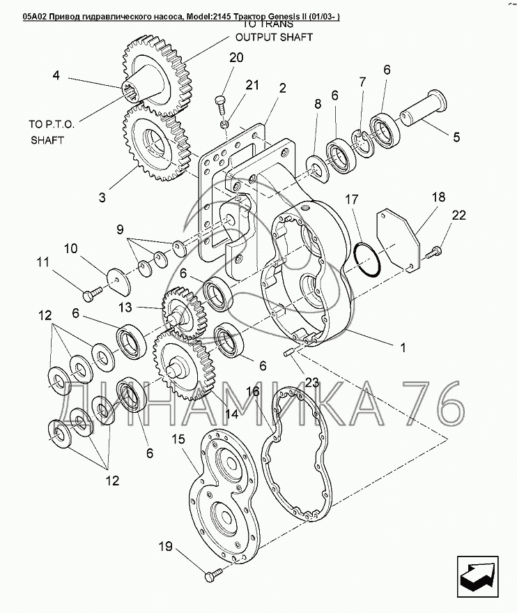 Перечень комплектующих от 05A02 Привод гидравлического насоса на Versatile серии GENESIS