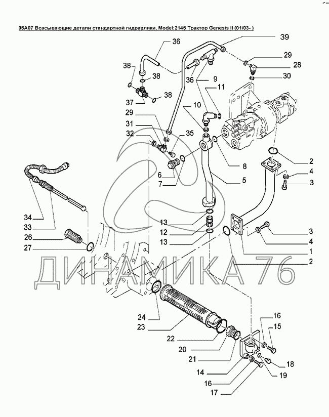 Перечень комплектующих от 05A07 Всасывающие детали стандартной гидравлики на Versatile серии GENESIS
