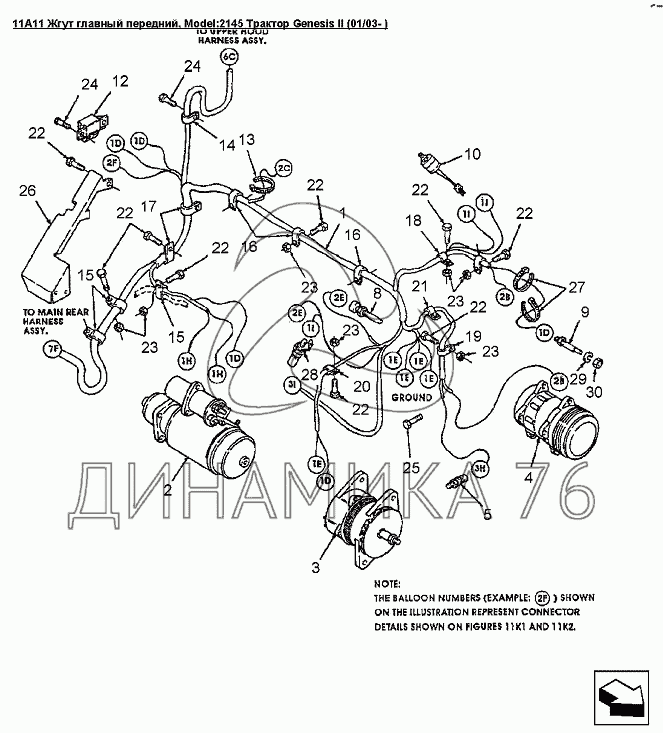 Перечень комплектующих от 11A11 Жгут главный передний на Versatile серии GENESIS