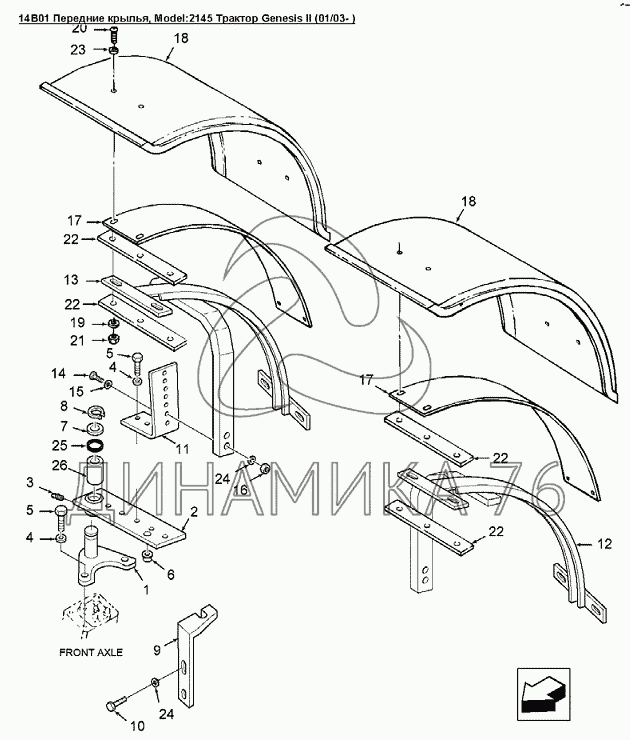 Перечень комплектующих от 14B01 Передние крылья на Versatile серии GENESIS
