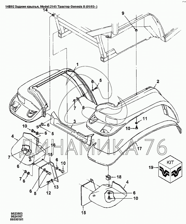Перечень комплектующих от 14B02 Задние крылья на Versatile серии GENESIS