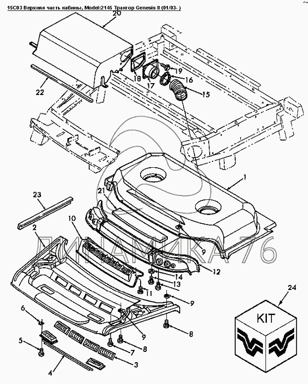 Перечень комплектующих от 15C03 Верхняя часть кабины на Versatile серии GENESIS