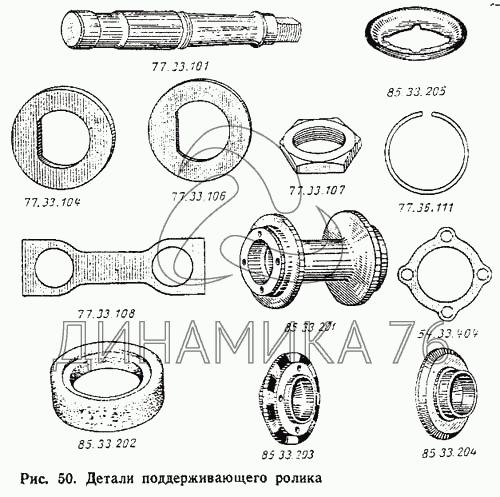 Детали поддерживающего ролика на ДТ-75М (до 1996 г.)