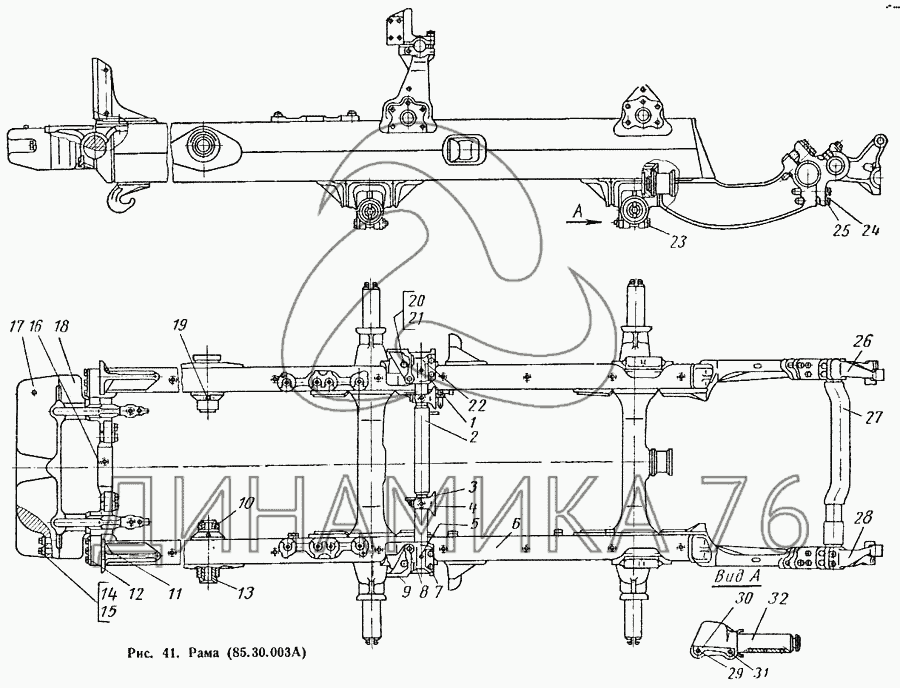 Перечень комплектующих от Рама (85.30.003А) на ДТ-75М