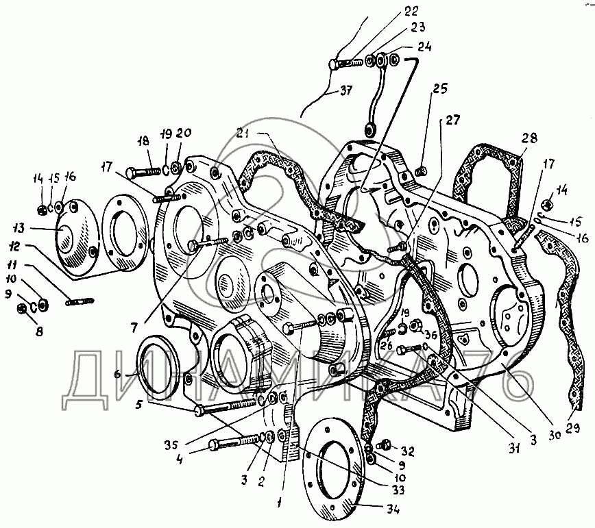 Перечень комплектующих от Картер шестерен на ДТ-75МВ