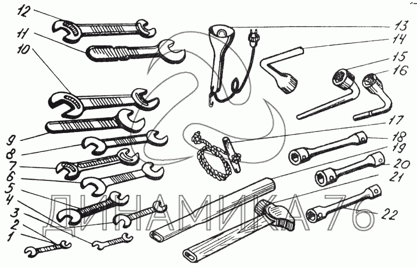 Перечень комплектующих от Комплект инструмента и принадлежности. Ключи на ДТ-75МВ