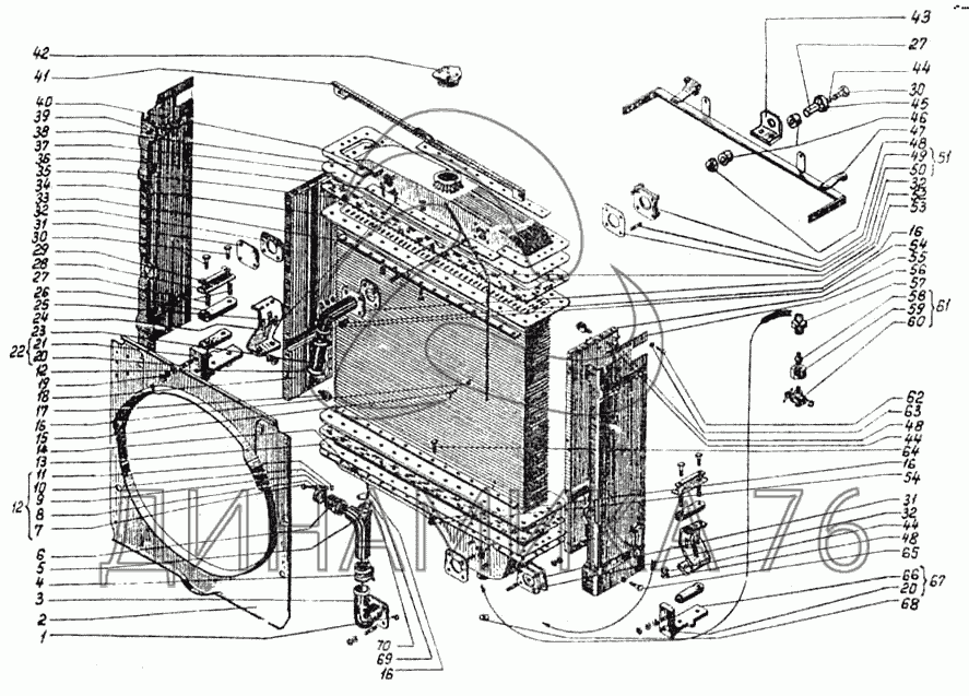 Схемы запчастей предназначены для справочных целей! Мы продаем не все запчасти от Радиатор водяной на ДТ-75МВ, представленные в этом списке.