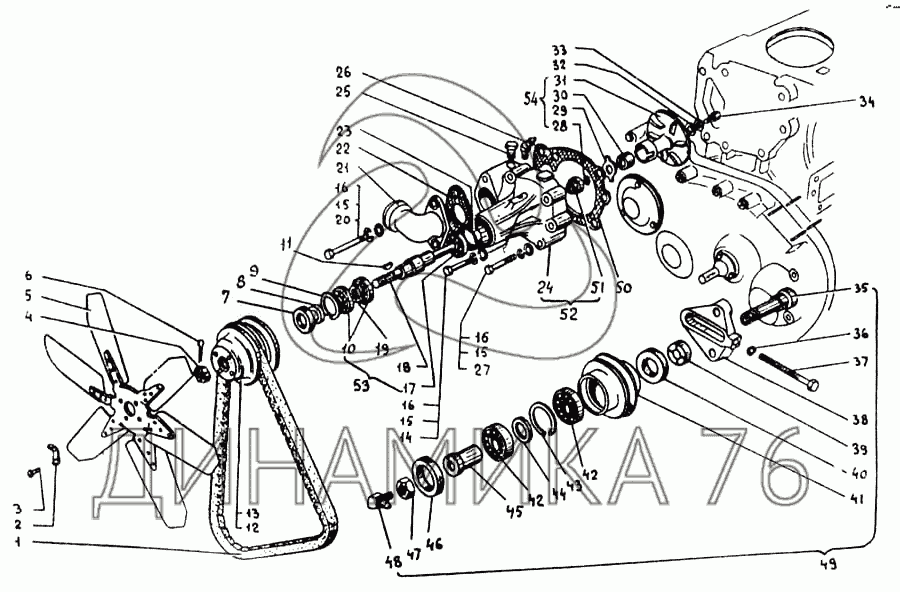 Перечень комплектующих от Водяной насос и вентилятор на ДТ-75МВ