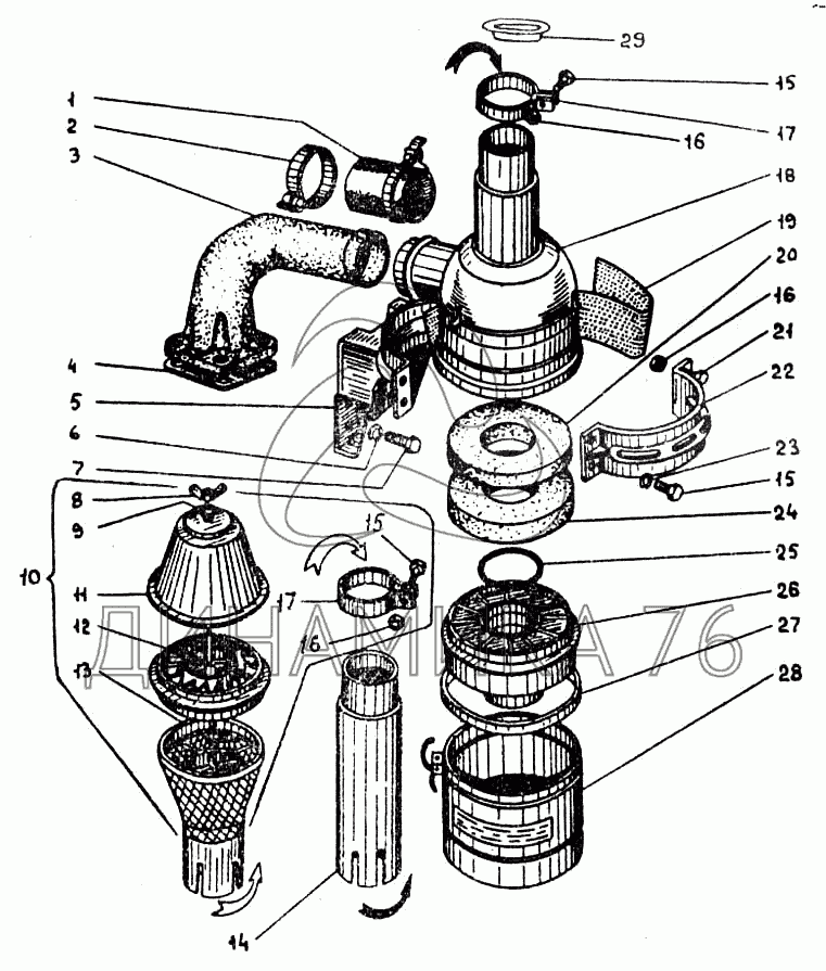 Перечень комплектующих от Воздухоочиститель на ДТ-75МВ