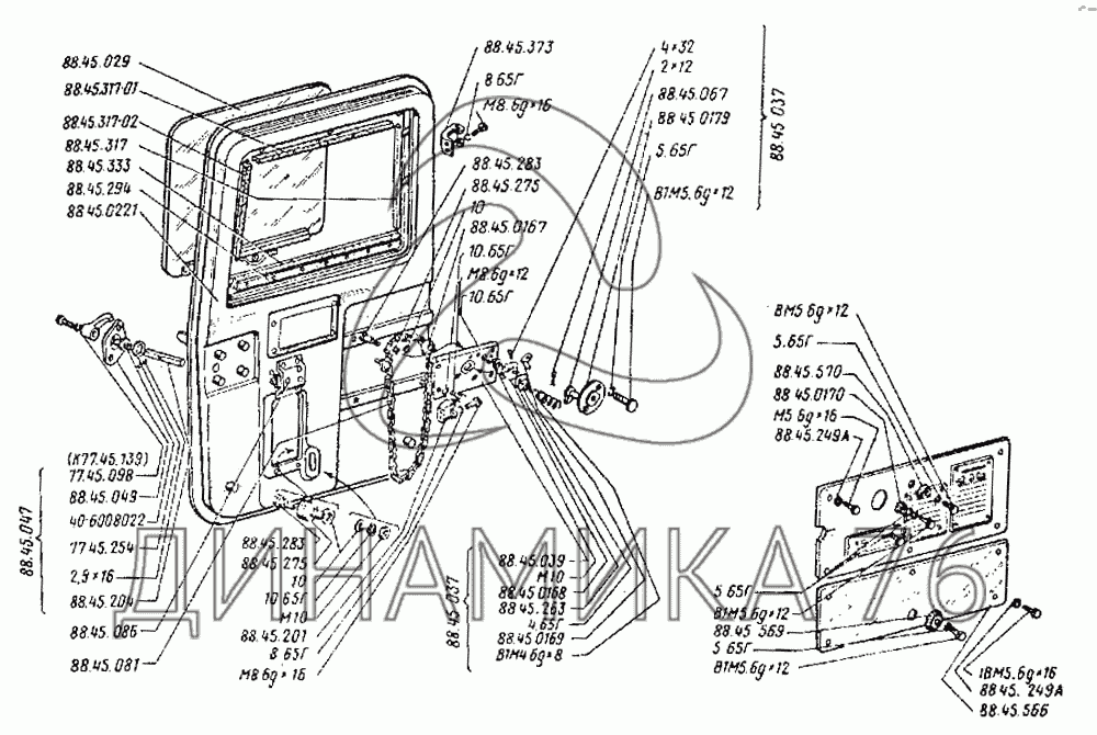 Схемы запчастей предназначены для справочных целей! Мы продаем не все запчасти от Кабина. Дверь кабины на ДТ-75Н, представленные в этом списке.