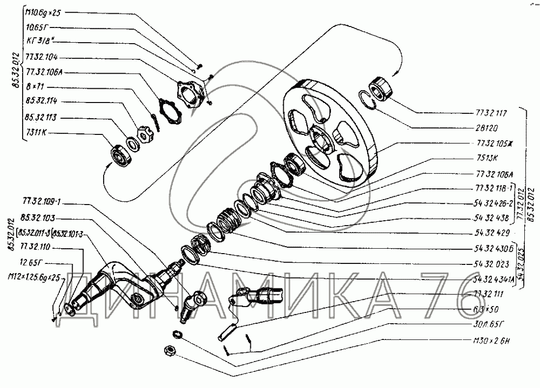 Перечень комплектующих от Колесо направляющее с гидравлическим натяжителем гусеницы на ДТ-75Н