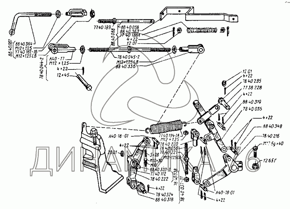Схемы запчастей предназначены для справочных целей! Мы продаем не все запчасти от Управление трактором. Тяги, рычаги на ДТ-75Н, представленные в этом списке.