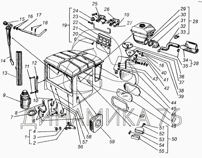 Перечень комплектующих от Оборудование кабины на ДТ-75В, ДТ-75БВ, ДТ75Н