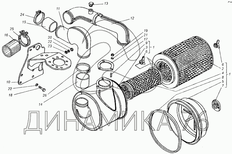 Перечень комплектующих от Воздухоочиститель на ДТ-75В, ДТ-75БВ, ДТ75Н