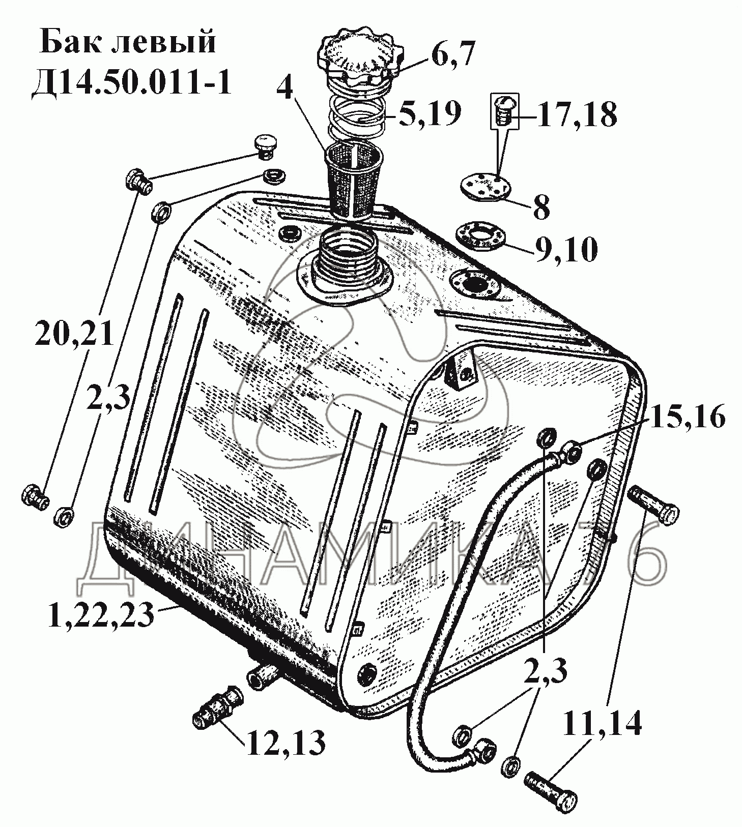 Схемы запчастей предназначены для справочных целей! Мы продаем не все запчасти от Бак левый Д14.50.011-1 на ВТ-100Д, представленные в этом списке.