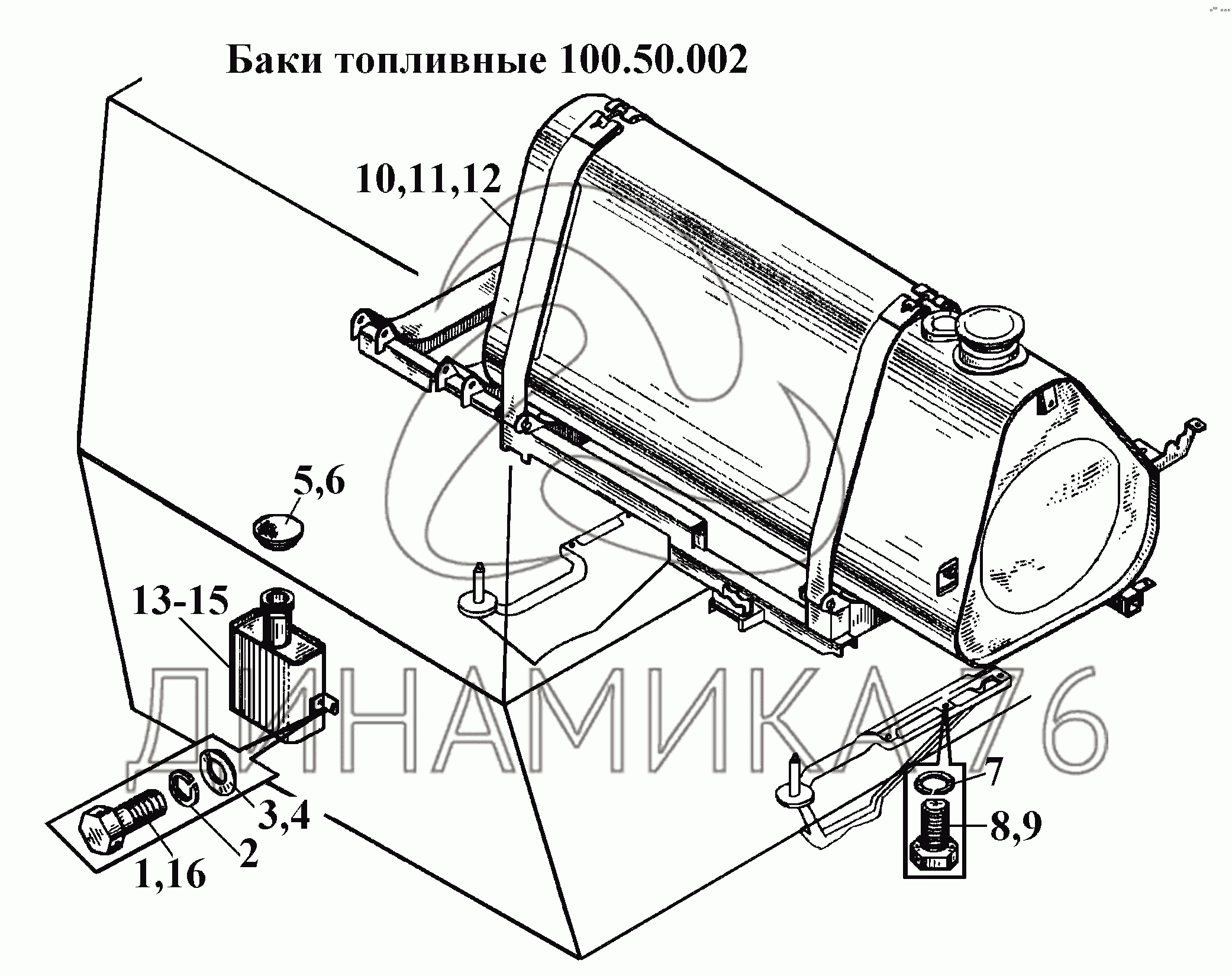 Перечень комплектующих от Баки топливные 100.50.002 на ВТ-100Д