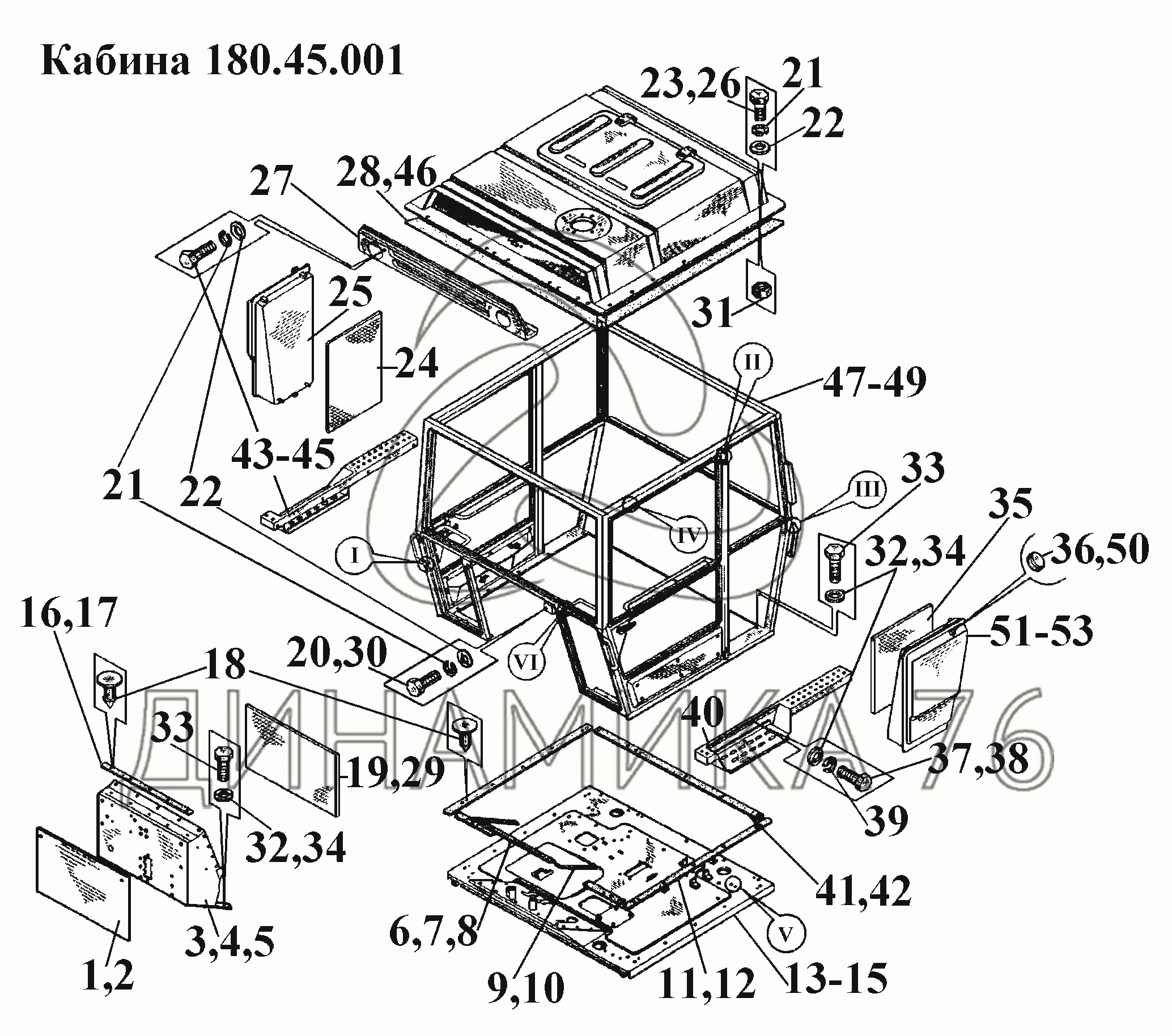 Схемы запчастей предназначены для справочных целей! Мы продаем не все запчасти от Кабина 180.45.001 (2) на ВТ-100Д, представленные в этом списке.