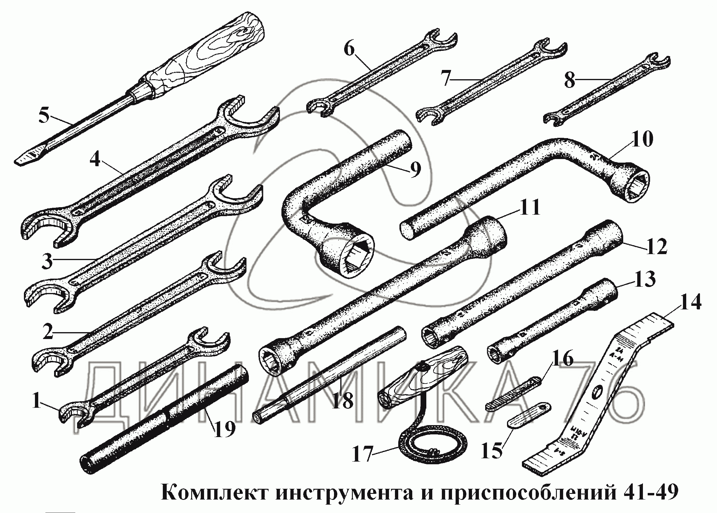 Схемы запчастей предназначены для справочных целей! Мы продаем не все запчасти от Комплект инструмента и приспособлений 41-49 на ВТ-100Д, представленные в этом списке.