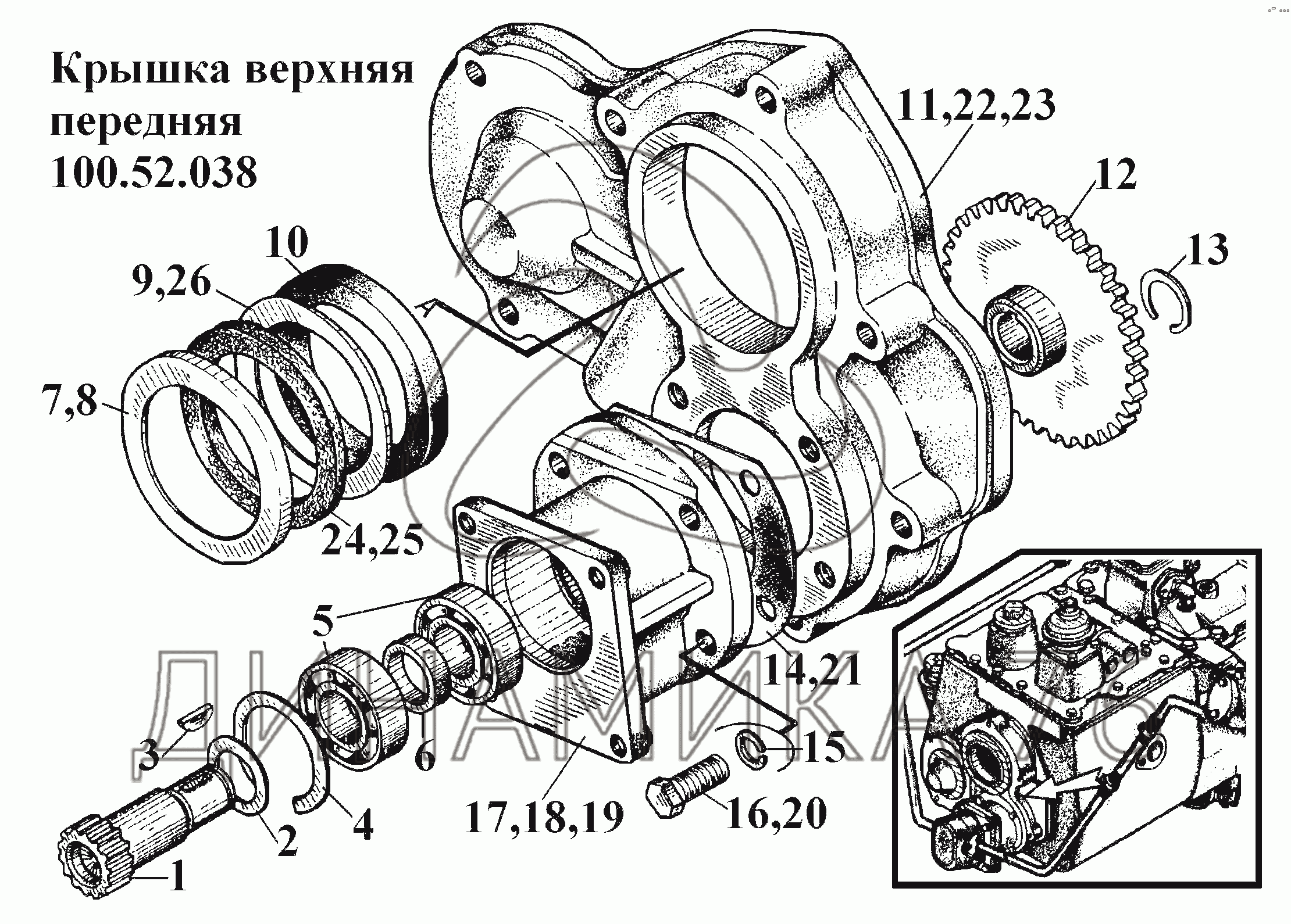Схемы запчастей предназначены для справочных целей! Мы продаем не все запчасти от Крышка верхняя передняя 100.52.038 на ВТ-100Д, представленные в этом списке.