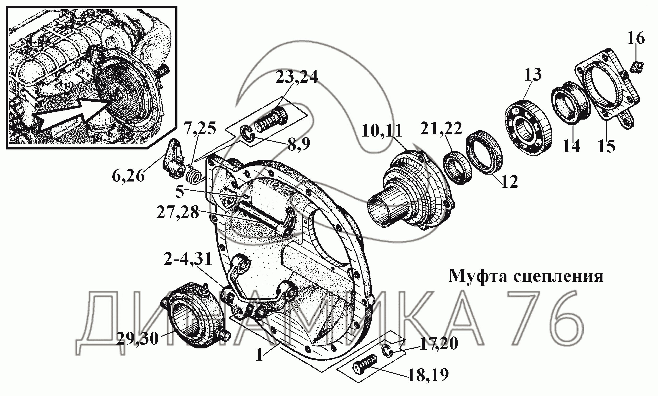 Перечень комплектующих от Муфта сцепления (1) на ВТ-100Д