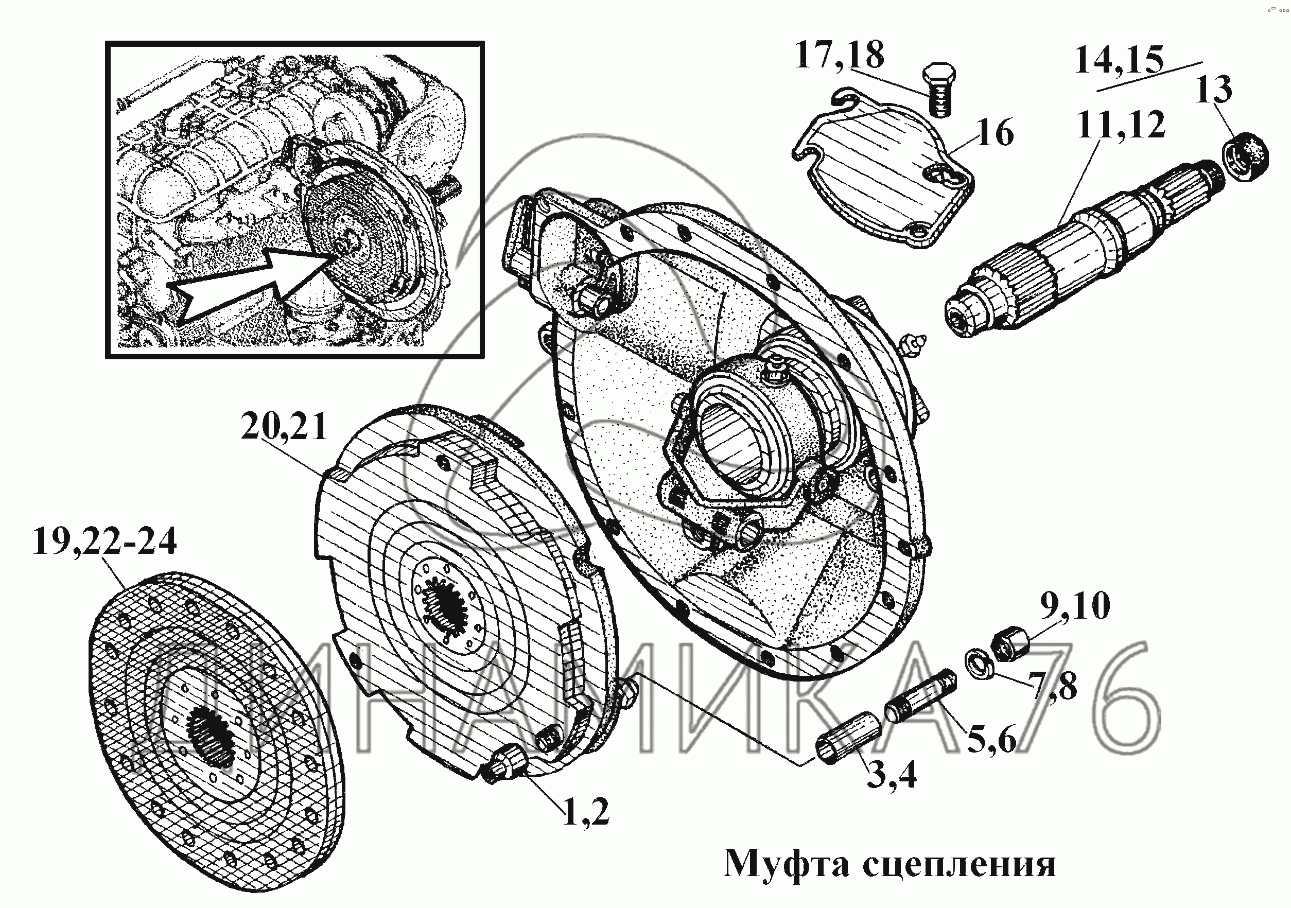 Перечень комплектующих от Муфта сцепления (2) на ВТ-100Д