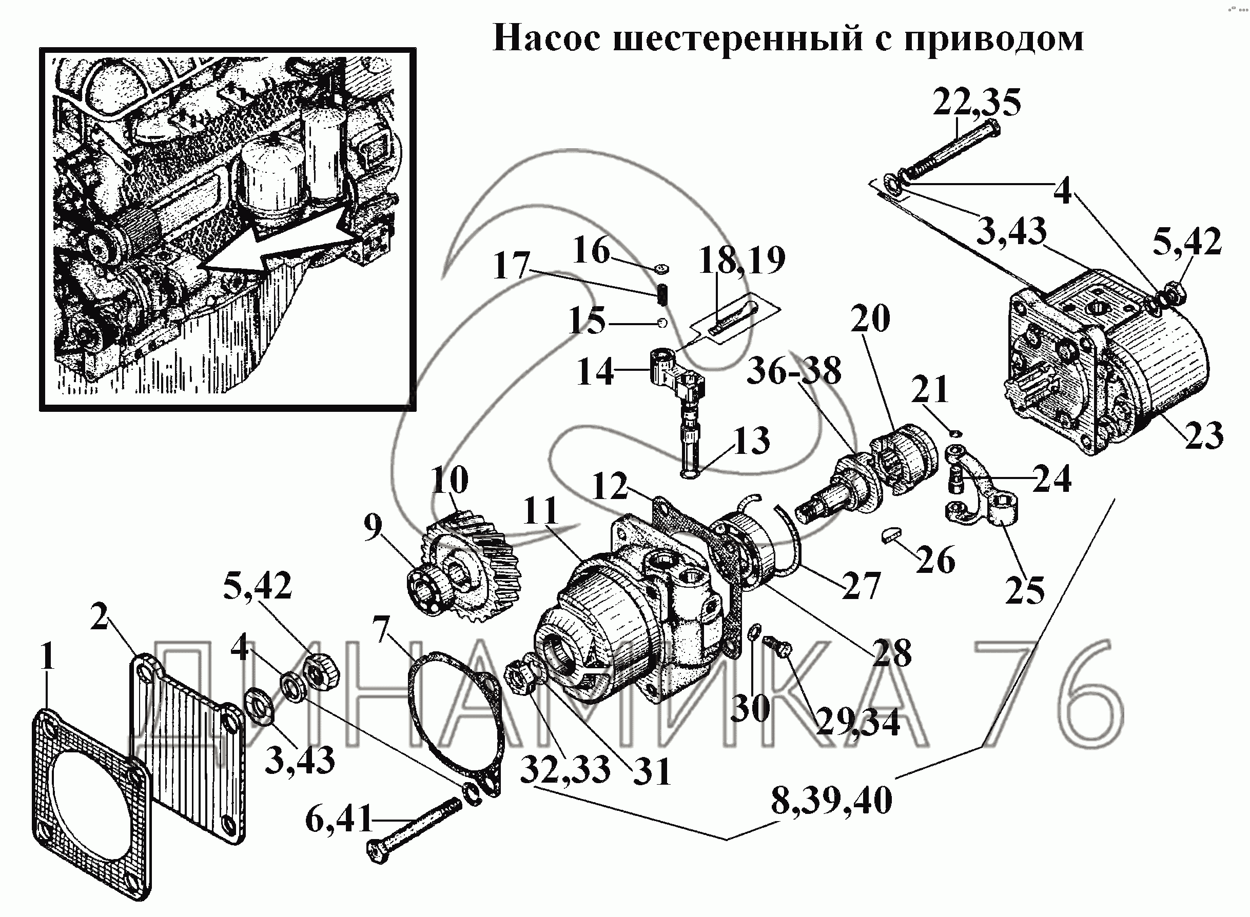 Перечень комплектующих от Насос шестеренный с приводом на ВТ-100Д